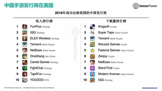 美国手游畅销榜 TOP100 的营收逐年递增,但其中中国手游的营收增速更为明显。2018 年 Q4 期间,莉莉丝《Rise of Kingdoms》(中文名:万国觉醒)和梦加网络《苏丹的游戏》进入美国手游畅销榜 TOP100,从而将中国手游在 TOP100 的市场份额提升至 9%。