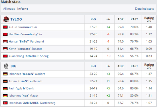 虽然TYLOO尽力拿下了一分,但BIG经济优势巨大每局都是长枪局,最终BIG16-13扳回一城。我们图三见!