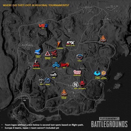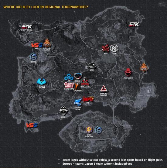 近日,Twitter上一位忠实的赛事粉丝制作了伦敦FGS各大战队的习惯跳点(海岛+沙漠)。