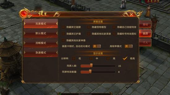 值得一提是,在画质设置里,《蓝月传奇》腾讯版甚至还提供了高帧率模式的选项,让玩家能够自行选择是否要体验丝般顺滑的玛法大陆。