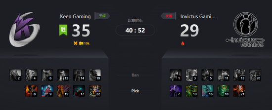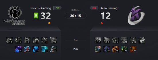 28分钟,IG依靠萨尔瞥视将美杜莎赶离战场后,5打4轻松赢下团战,并击杀二代肉山,将经济优势扩大到15K。最后30分钟IG五人开雾冲向KG半区,骑脸团灭KG,获得胜利。