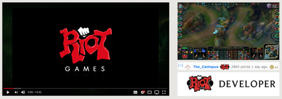 大家会注意到,我们把图标中的拳头图案和“Riot”单词这两个元素分离了开来。通过观察图标以往的所有使用场合,我们发现当拳头图形嵌在“Riot”单词中,它很容易失去辨识度。拳头图案是拳头游戏的核心所在,因此我们决定将它和文字分开。这样即便尺寸变小,我们的拳头依然一眼就能看清。