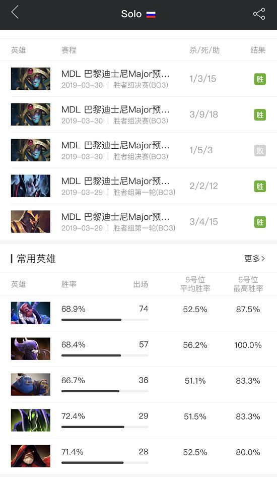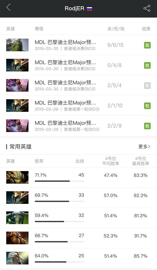前文已经提过,罗杰是VP转型的根本动力。只要稍微了解一下Lil这两年来的情况,相信你也会得出同样的结论。操作方面,罗杰是少数能与Fy、JerAx并驾齐驱的四号位。而在数据上,罗杰和Solo一样,都为队伍打出了成吨的信息。至于65%的参团率,也说明罗杰是一个喜欢单人带危险线,注重单人发育的酱油。英雄池方面,罗杰的小强胜率接近70%——黑贤小强的组合拳,是VP在上个Major的惯用套路。除此之外,罗杰的Chen也达到了64%的恐怖胜率。
