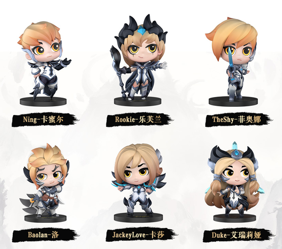 为了庆祝LPL首次获得全球总决赛冠军这一历史时刻,我们以推出冠军手办的形式为iG献上荣誉的勋章。iG冠军迷你手办套装共包含6名英雄,对应着参与2018全球总决赛的六名队员:Rookie-妖姬,JackeyLove-卡莎,Baolan-洛,TheShy-剑姬,Duke-刀妹与Ning-青钢影。