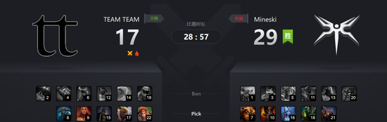 至于胜者组的另外一场比赛,Mski赢得比想象中轻松很多。虽然在小组赛阶段横行无阻,但TT在Mski的身上摔了狠狠地摔了一跤。第一局比赛,TT再次证明了幽鬼在当前版本的弱势。虽然他们这次拿的阵容比昨天Pango选的好多了,但EE的幽鬼还是在中前期混的很不顺利。另外,前天我们还吹过的TT中单Gunnar这次也彻底哑火,可能是他对剧毒这种英雄不太熟悉吧。另一边,Febby的牛头在拿到蓝杖后,打出了堪比JerAx在TI总决赛上的效果。当然,之所以Febby能来去自如,主要还是因为TT这几兄弟的站位实在是太差了。而Kpii的先知,则是在拿到紫苑后成为了杀幽鬼的关键角色。不过,Mski能赢的那么快主要开始靠阿杰的中单TB。TB先是在对线期打出了几波漂亮的反杀,随后更是顶着对面的魔法伤害拆掉了TT的三路。