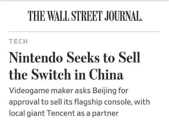 晚上6点左右,华尔街日报也发布新闻称,任天堂的发言人表示他们已与腾讯达成合作,并已经向有关部门提交了在中国发售NS的申请。