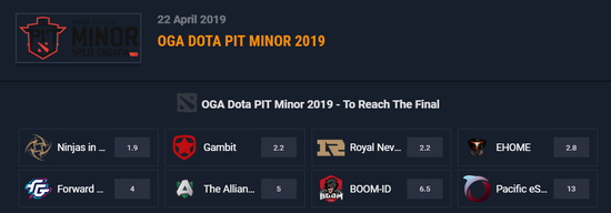 第一眼看到分组名单的时候,相信大多数观众和我一样,都会发现AB两组的实力分配极其不均。虽然由于近几年的比赛爆冷比较频繁,使得“死亡之组”变成了一个供人调侃的梗,但是在本次Minor中,A组却让“死亡之组”回到了它字面上的意思——夺冠赔率最低的四支战队,有三个都在A组,这使得本次比赛从小组赛开始就变得火药味十足。这三支队伍,包括了桃李满天下的红星老师、话事人PPD率领的NIP,以及中国区预选赛冠军RNG。