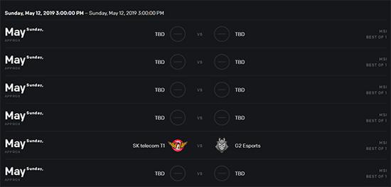4月23日,2019MSI季中冠军赛入围赛进行了抽签仪式,来自外卡赛区的8支队伍对阵表随后出炉。虽然目前还未开战,但是今天LoL Esports官网已经发布了MSI小组赛三支队伍的对战表,其中第一日iG战队将对阵G2,而小组赛收官战则是iG直面SKT。
