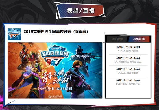 完美世界全国高校联赛每周赛事都会在专题页面进行直播,并会请到四位主播解说赛事,你可以前往官网观看本周各分站点直播!