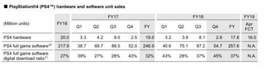 而在PS4硬件方面,销量则出现了下滑,索尼预测这个趋势还会持续到明年。在2017财年PS4卖出了1900万套,在2018财年则卖出了1780万套,索尼预测到了2019财年,这个数字会下降到1600万套。