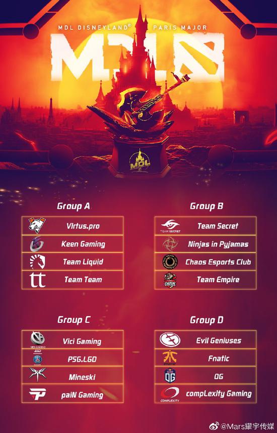 Mars公布了MDL巴黎迪士尼Major的小组赛分组情况。
