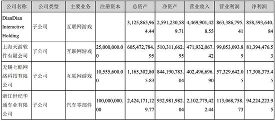 世纪华通旗下三家游戏子公司,包括点点互动、天游软件和七酷网络。三家游戏公司去年的营收成绩分别为44.7亿元,4.72亿元和4.02亿元营收。从数据上来看,与点点互动合并报表显然是世纪华通2018年业绩上升的主要原因。