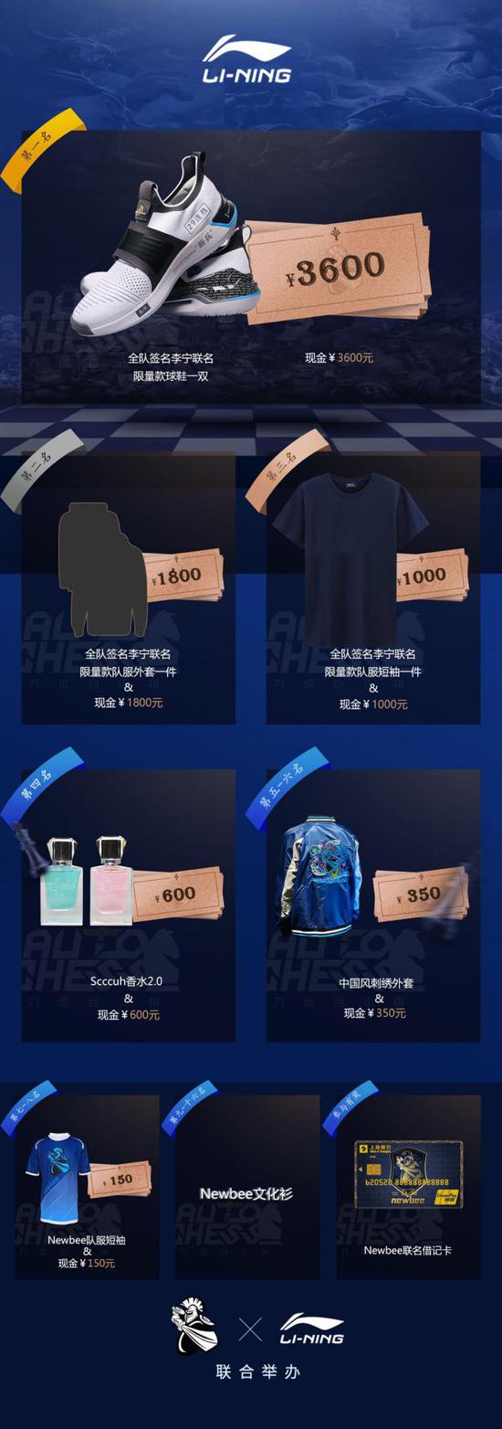 第九至第十六名选手们也将会获得Newbee文化衫一件。