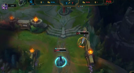 中期PVB想依靠阵容强势期来做到更多的事,不过经验充足的iG避战做的很好,没有落入对方的节奏。阵容更加的后期的IG反而在中期领先了3K的经济。