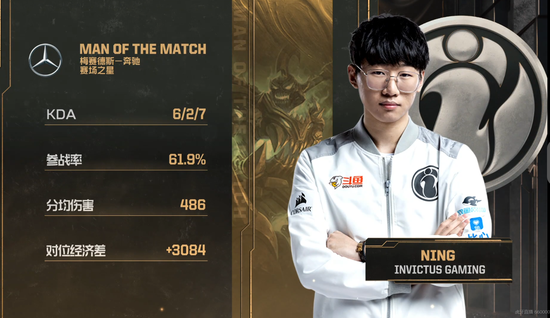 在高地上的拉扯,iG经过一波波的拉扯杀人最终赢下比赛。MVP给到Ning王的人马,上路的一波反蹲电竞了上路的优势,从而盘活正局。