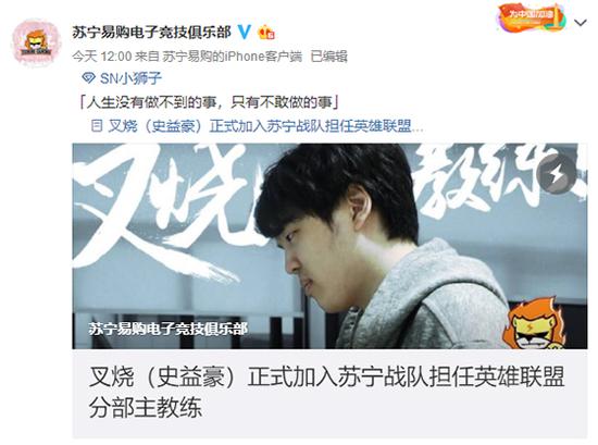 5月16日,SN电子竟技俱乐部官博宣布,原FW战队分析师、LMS赛区知名赛事评论员叉烧加盟SN英雄联盟分部担任主教练。由于原FW中辅Maple和SwordArT春季赛都转会到了SN,所以LMS网友们对于叉烧加盟SN展开热议。