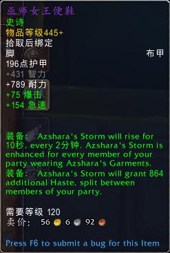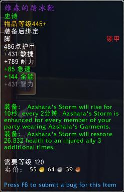 装备:艾萨拉风暴将获得额外864点急速等级,由小队成员分摊。