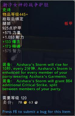 装备:艾萨拉风暴将崛起每2分钟将崛起10秒。艾萨拉风暴将强化每一个装备艾萨拉风暴护甲的盟友。