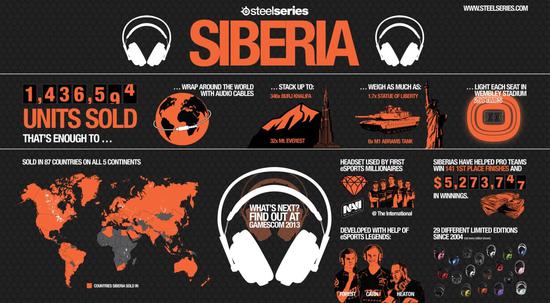 同样是在2007年,赛睿综合了职业游戏玩家、DJ及摇滚歌手的建议,打造出配备全尺寸开放式耳罩和可伸缩“隐形”麦克风的西伯利亚后挂式耳机。超大尺寸的织物耳罩带来极致舒适体验,西伯利亚系列引人注目的视觉设计使耳机外型更独具特色。在当时风靡一时,全球的各大电子竞技赛场上都能看到西伯利亚后挂耳机的身影。