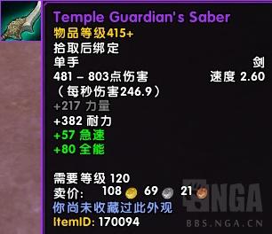 使用:增加你的急速471点持续30秒。(1分钟30秒冷却)