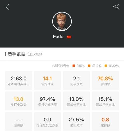 从斯德哥尔摩回来之后,不知是因为夺冠而有些飘飘然,还是因为已经获得TI直邀的名额而略有松懈,整个VG的状态相比之前都有所下滑。不过其中有一位选手从始至终都保持着高水平的竞技状态,那就是Fade。这个赛季开始以来,Fade的状态越来越好,比赛中,Fade的四号位英雄都玩得风生水起,对于VG中前期节奏的打开和团战中的控制都带来了巨大的帮助。