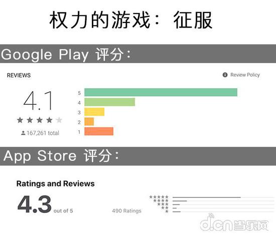 在口碑方面,无论是在Google Play,还是在App Store,《权力的游戏:征服》评分都相对靠前,分获4.1和4.3(5分制)。