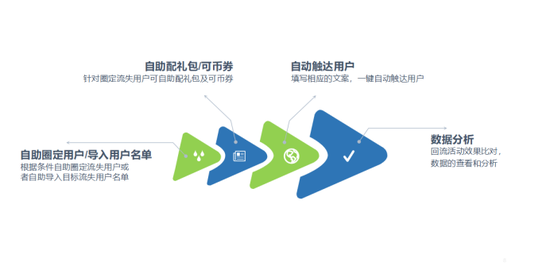 下一步,流失召回将会作为OPPO游戏中心的一个模块或功能,整个流失召回活动的过程将做成自动化并且开放给开发者,开发者可以在OPPO开放平台上完成对自己游戏流失用户的整个精细化运营,其中包括目标流失用户的圈定、回归福利的配置、自动触达用户、查看数据分析召回效果等。
