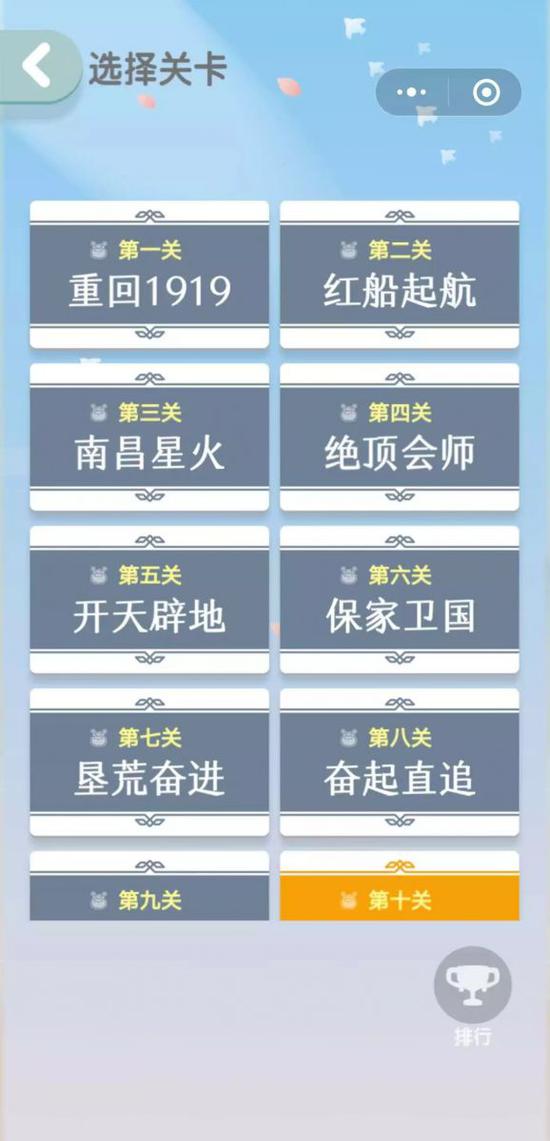 《建功搭搭搭》每一关卡的场景,都根据关卡所对应的历史主题进行的特殊建模,共青团中央的新媒体IP形象“团团”,也会化身跟玩家一样的“方块人”形象,在每个关卡的终点等待接引玩家继续走百年青运之路。