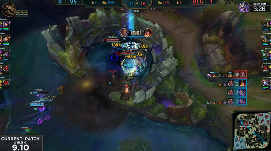 23分钟BLG出现失误,剑魔被V5抓死,随后V5选择继续追击但是这波追击直接让V5自己被团灭,BLG直接去拿下大龙。