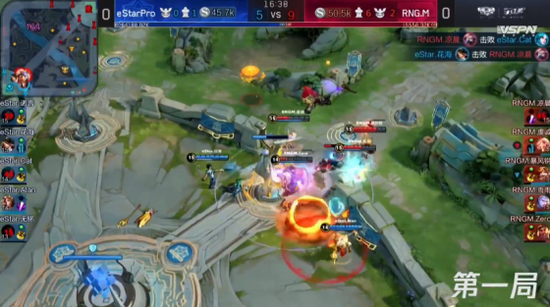 6分RNGM1换3,拉回局势。8分,RNGM4打5,两人被杀,随后eStarPro拿下主宰。9分RNG打出反扑团,击杀敌方4人。