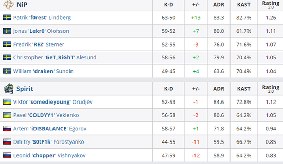 NiP vs Spirit 2-1 Mirage 12-16;Dust2 16-7;Nuke 16-14;