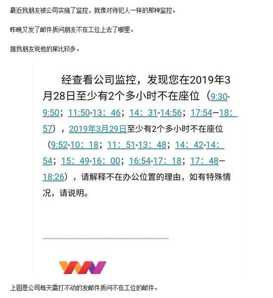 最近,一张吐槽游戏公司监控员工的截图在游戏圈疯传。据描述,该公司把员工当犯人一样监控,不仅记录下员工离开座位的精确时间和频率,每天还会发邮件质问,要求员工详细解释。