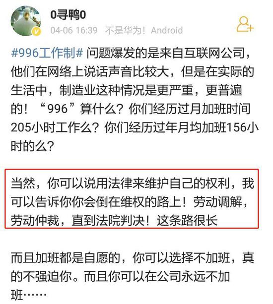 网友【秦彦卿】表示:“互联网企业,国企,还有一些有核心技术的小公司来,我都待过,996公司普遍效率低下,正常上班的公司反而实际效率更高。个人认为除了真的紧急项目,常态化加班的公司产出都不高。部分互联网公司只是被高速成长掩盖了管理水平低。”