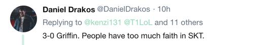 拳头解说Drakos:3-0,Griffin赢。大家对SKT的信心过多了