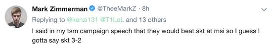 北美分析师Mark:我在我的TSM竞选演讲时就说过,他们(TSM)会在MSI上击败SKT,所以我会说SKT3-2赢。