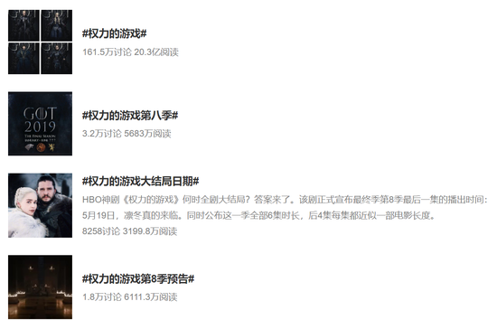 《权力的游戏》的影响力是全球性的,在国内也同样有着海量的受众,微博话题阅读达到20亿、讨论160万。贴吧关注117万,发帖总量480多万。此外,受益于腾讯与HBO方面的合作,在腾讯视频平台,前几季剧集的网络播放量基本都在数亿的量级。这不是常规美剧IP能达到的高度。