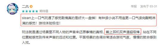 而声音就是他们在叙事方式上找到的突破点。不过,比起沉浸感强的影游互动,这样的玩法与观看悬疑解谜电影更加类似,玩家更多的是旁观者的视角,参与感和代入感比较弱。有玩家就对此表达了自己的看法: