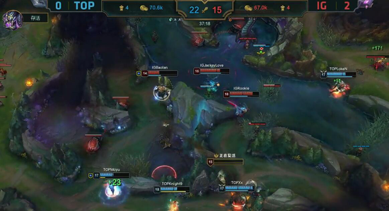 15分钟的土龙团,iG站位略显分散,被TOP打赢,前期的优势稍微有所折损。