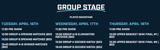 由于之前多支战队退赛,因此主办方也对小组赛阶段的赛程安排进行了调整,从原先的12支队伍分成2组进行BO2的循环赛改为了8支队伍分成2组进行BO3的GSL双败赛制,并且在小组赛阶段不会淘汰队伍。