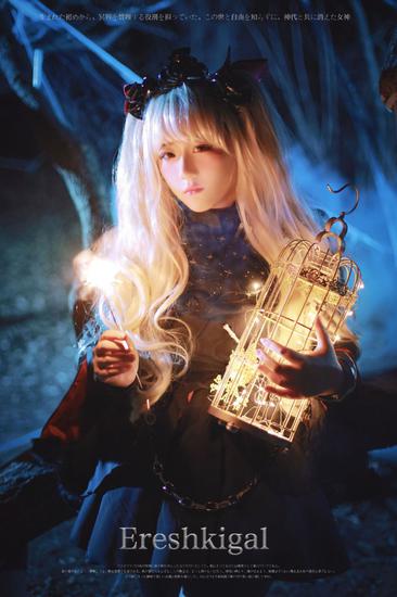 埃列什基伽勒作为附身在人类少女体内的苏美尔神话死神,与生俱来便带着可畏可怖的肃杀气质。选手在场景选择上非常好的表现了阴暗的氛围,但是通过暖色调光线的处理,又体现了埃列什基伽勒“冥界天使”的温柔一面,两者结合既富有冲击力又相得益彰,颇具巧思。