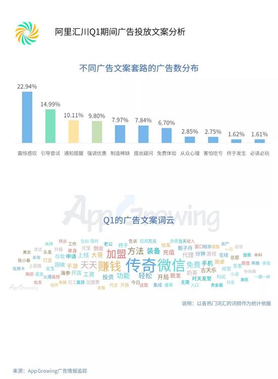 “传奇”“微信赚钱”的词汇为该平台广告文案的高频词汇,传奇题材广告,网赚类的广告是阿里汇川广告平台较为常见。