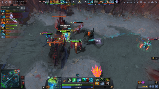随着二代肉山刷新,EHOME瞬间打掉肉山,盾奶在手很是想跟FWD开团。他们的心愿在33分钟完成,下路符点双方强行开团,大炮暗灭圣堂面对FWD的阵容硬是显得输出不足,几经拉扯EHOME带盾带奶溃败。稳稳的互刷后,三代肉山给了双方一个不得不开团的理由,FWD小狗不开狂暴强冲跟着DP一起被杀,EHOME顺利拿到三代肉,不过430带盾跳脸瞬间倒地,礼尚往来的给FWD一丝喘息机会。一波盾没打起来,只能等待四代肉山刷新,52分钟肉山站起来双方团战如期而至。经历了一波世界级的拉扯以及买活大战,XINQ小Y亮眼的操作帮助EHOME击溃FWD,稳稳的拿下了四代肉山。