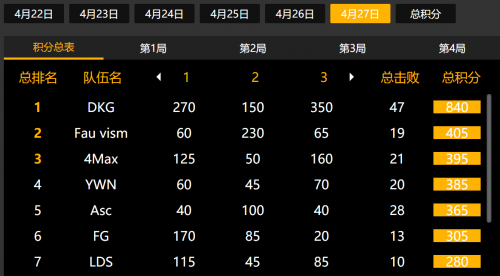 DKG全队更是豪取47击败,拿下840积分,超过第二名一倍!总排名也一跃上升至第三!