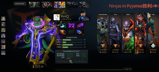 最后一把,XinQ在前中期多次偷到了神灵的大招。附带奥数至尊的牺牲,可以造成难以估量的伤害。上路二塔附近那一次,XinQ差点就撞死了Fata。后期守高,A杖慧光拉比克偷到了莱恩大招,就是靠XinQ的技能,EHOME才能把本该早早GG的比赛拖到一个多小时。在EHOME最有可能取胜的那波团战中,也是XinQ靠偷来的莱恩大秒了黑弓,打出了ACE的买活。但所谓“出来混都是要还的”,最终,XinQ在四塔附近连吃哈斯卡、末日和莱恩的三个大招,他的阵亡也预示着EHOME的失败。而除了拉比克,这局比赛还有很多东西值得一提。