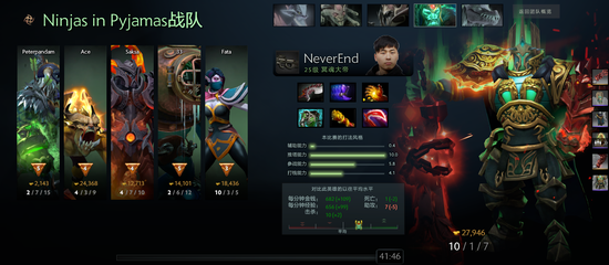 总决赛,中国队长与美国队长的大战一触即发。第一把,NIP和EHOME就为观众们贡献了一场51分钟的世纪大战。这场比赛中,双方数次攻守交换。最终,NIP凭借着买活上的优势先下一城。先输一局,情况不容乐观。第二把,EHOME点出了430的美杜莎。虽然经济一度落后,但EHOME却始终掌控着比赛的走势。后期团战,美杜莎开大石化末日,又用秘术异蛇抽光了潮汐的蓝。少了两个关键大招,ACE的小狗又被妖精锤杀,EHOME扳回一分。大比分战平,NIP在第三局的BP中做了十足的针对——先抢末日、再抢美杜莎,把EHOME的绝活全拿了。这一次,比赛又被拖入了接近一个小时的世纪大战。ACE的美杜莎经济突破天际,但430的火枪也不甘示弱。只可惜,火枪还是难逃A杖末日的追杀。少了一个核,NIP拿下赛点。