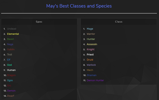随着时间的推移,自走棋开始越来越以”职业”为中心来组成阵容。目前流行的阵容大多数都是围绕”职业的”,比如六战、三法、三猎,我们常常选择在达成一个”职业体系”后再去考虑一些种族的问题,比如使用率非常高的”亡灵”、”元素”、”野兽”与”娜迦”,这些都是非常容易组合成的种族羁绊。虽然神族和六地精非常强大,但是他们的不稳定性总是导致在高分段比赛中比较少见到。所以说目前环境的主要思路还是要靠”先确定职业”,再“根据形式补充种族羁绊”来进行运营。