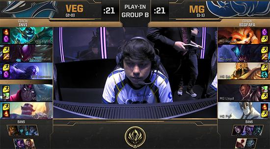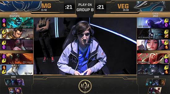 前期MG频频针对瑞兹致其发育极差,同时阿卡丽三路游走击杀多人。中期MG通过大龙视野差成功rush大龙,但VEG严防死守没有掉塔。后期第二条大龙团战,MG拿到大龙团灭VEG,虽然确定被淘汰,但还是打破了VEG的不败金身。