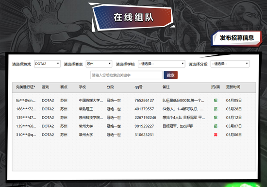 海选赛已经到最后一周啦,你还没找到心仪的队友吗?快来在线组队看看!打开高校联赛官网页面,点击右侧在线组队并输入个人信息,就可以开启组队功能,结识更多与你志同道合的伙伴!