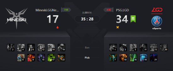 34分钟蓝猫先手开路击杀米波,米波马上买活试图反打,但米波面对众人围殴毫无办法,核心倒下后Mski敲出GG。恭喜PSG.LGD顺利2-0击败Mski,成功晋级淘汰赛胜者组。