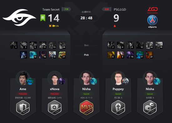 恭喜Secret战队2-1取胜晋级胜者组第二轮,而PSG.LGD则遗憾败北掉入败者组。比赛中可以看到他们自己出现了很多失误,希望这次失利能让他们好好总结反思吧,在败者组杀回来吧。